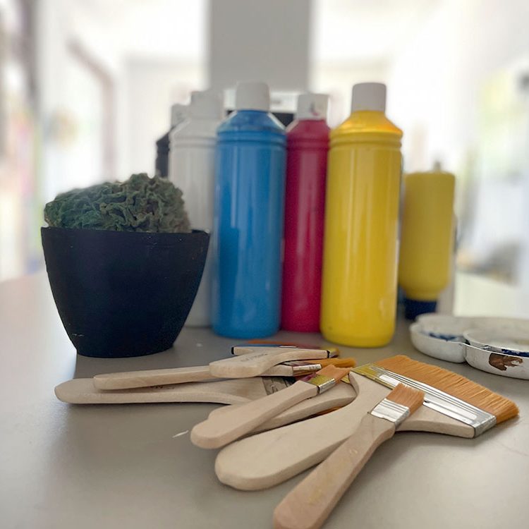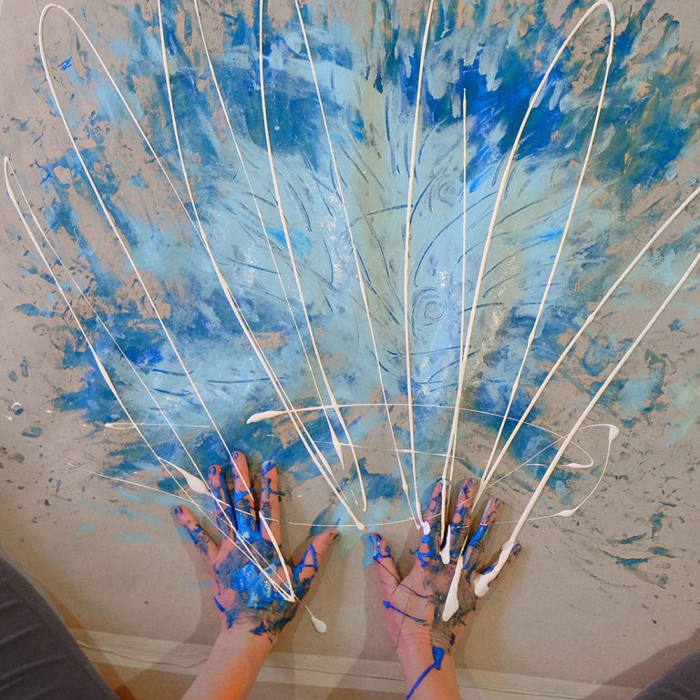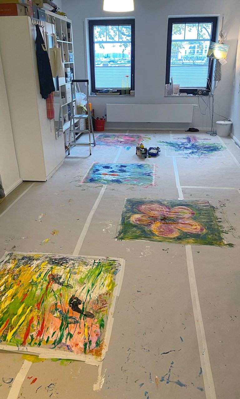 Erlebe individuelle Malbegleitung im offenen Atelier oder mit der mobilen Mal-Werkstatt für eine kreative Auszeit in eigenen Räumen.