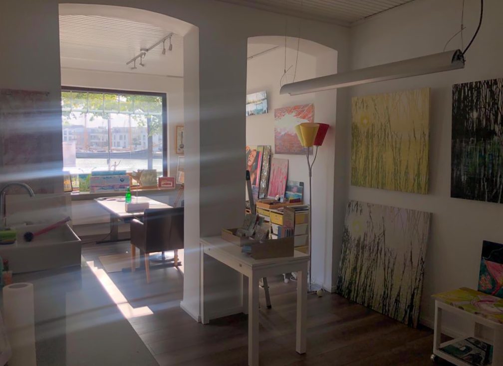 In meinem Atelier, in Eckernförde, verschmelzen Gestaltung, freie Kunst und Kreativität in einer inspirierenden Umgebung.