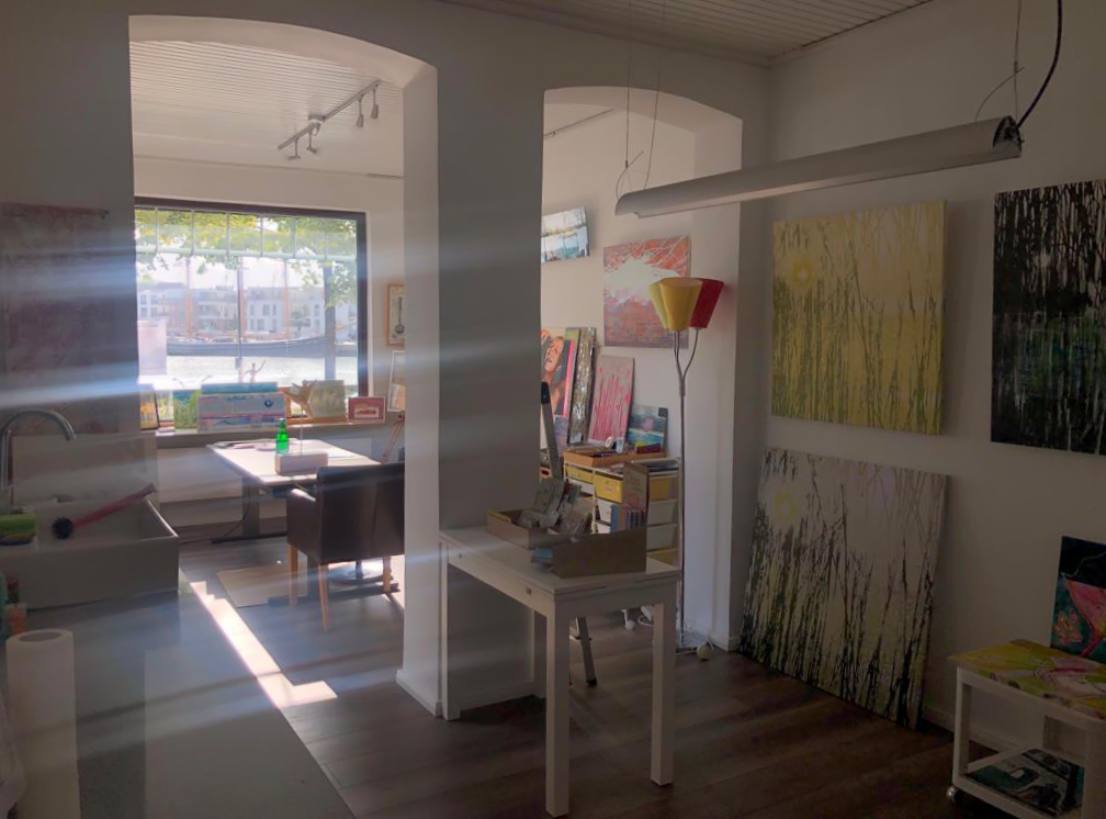 Es stehen spontan bis zu 6 Arbeitsplätze zur Verfügung. Außerdem Papiere, Pappen und Karten zum Gestalten mit Farben, Stiften, Wort- und Bildschnipseln. Ich begleite und unterstütze Sie gerne bei der Umsetzung einer Ideen und berate Sie zu Komposition und Materialwahl. Weitere Informationen zum Atelier finden Sie hier.