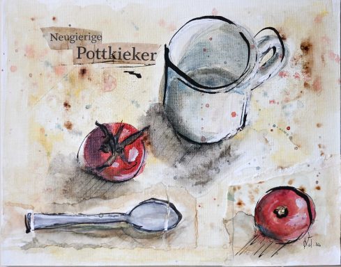 ... und schon beginnt das Kopfkino... denn dazu passt doch ein Rezept, ein Spruch, oder einfach Punkte? Vielleicht ist es auch das Etikett einer Flasche, das einen inspiriet; oder ein altes Foto, ein angefanges Bild, ein Fundstück, ein paar Augen die ergänzt werden wollen ...