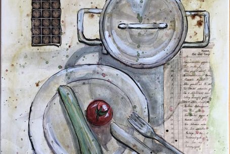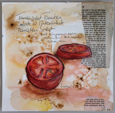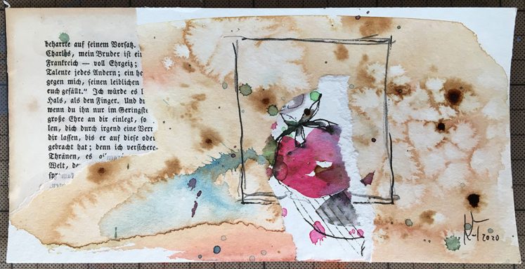 Es beginnt mit überschüssiger Farbe vom Pinseln oder einem Probe-Striche von neuen Stiften. Auch geleerten Behälter mit Flüssigkeit oder Papierschnipsel zählen zu meinen Resten, und die bekommen einen neuen Platz auf einer Fläche…