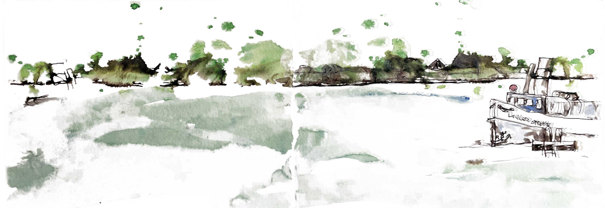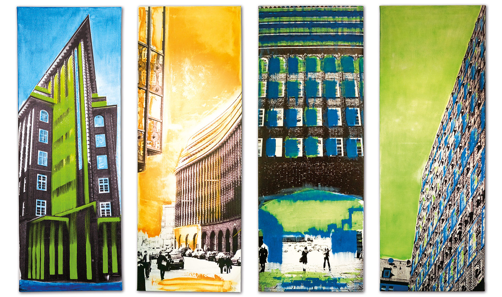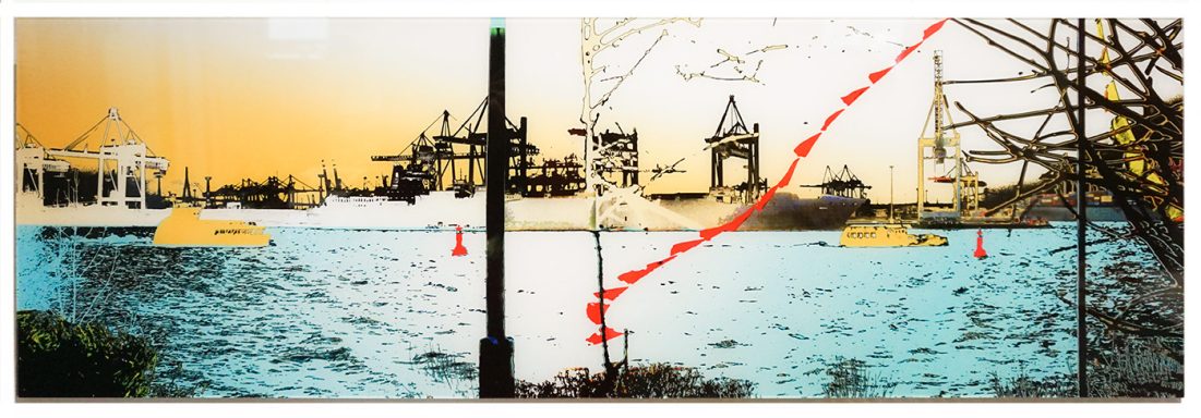 Das veränderte Foto lasse ich drucken, sodass ich danach mit Pinsel, Spachtel, Schwamm, Feder oder Stift neue Linien oder Flächen ergänzen und eine 3. Dimension schaffen kann.