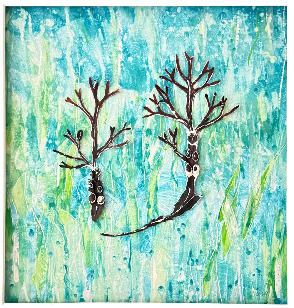 Da ich das große Glück habe an der Ostsee zu leben, entdecke ich sehr oft angespült Reste, in denen es Körper, Köpfe oder Figuren zu entdecken gibt, die mich auf neue Ideen bringen ... Anfang 2019 ist daraus eine ganze "Algenshow" entstanden ...