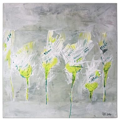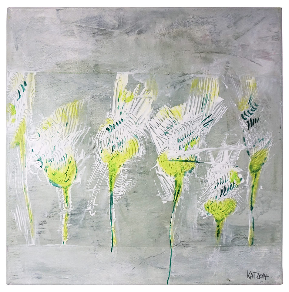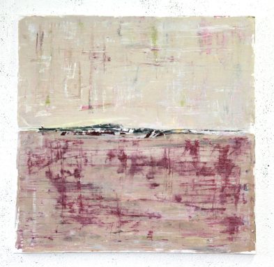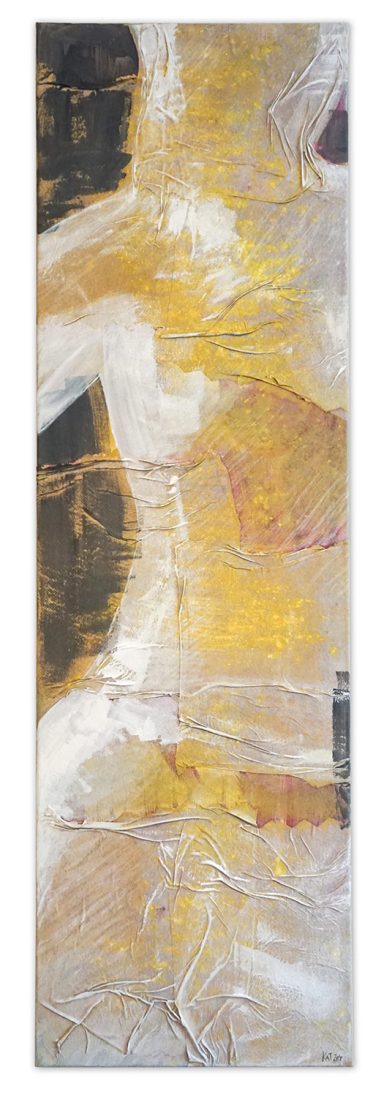 Das angefangene Bild steht dann für gewöhnlich lange in meiner Werkstatt rum und immer mal wieder kommen "Reste" dazu; bis ich irgendwann eine Idee habe, was ich daraus machen könnte. Sehr oft haben meine Bilder mehrere Schichten, weil ich viel ausprobiere. Richtig spannend ist es, wenn man die Schichten wieder an löst oder abkratzt, sodass Vergangenes wieder zum Vorschien kommt…. ;-)